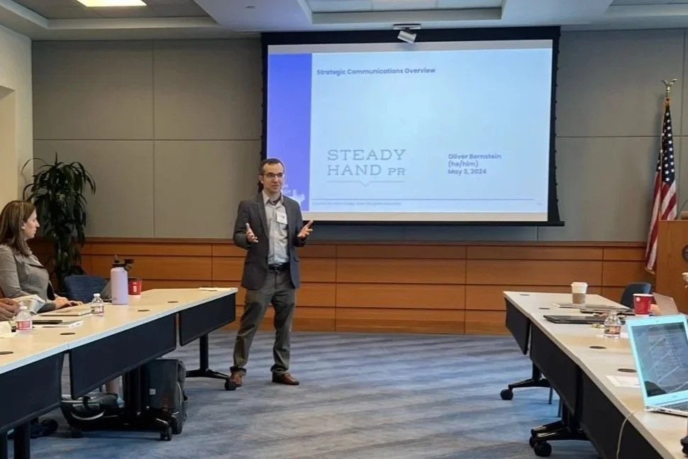 Steady Hand PR is nimble enough to jump on a last-minute opportunity, yet connected to a proven network of designers, web developers, trainers, social media strategists, videographers, and others who can grow with your needs. Whether it's pitching journalists, training your spokespeople, rewriting your messaging, or coordinating with our network to execute a full campaign, we can make it happen — all while staying steady and calm under pressure.